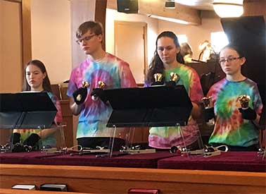The Rainbow Ringers is a hand bell choir open to all youth (6th-12th grade). They play sacred music regularly in our sanctuary worship services and occasionally, secular pieces at community events.